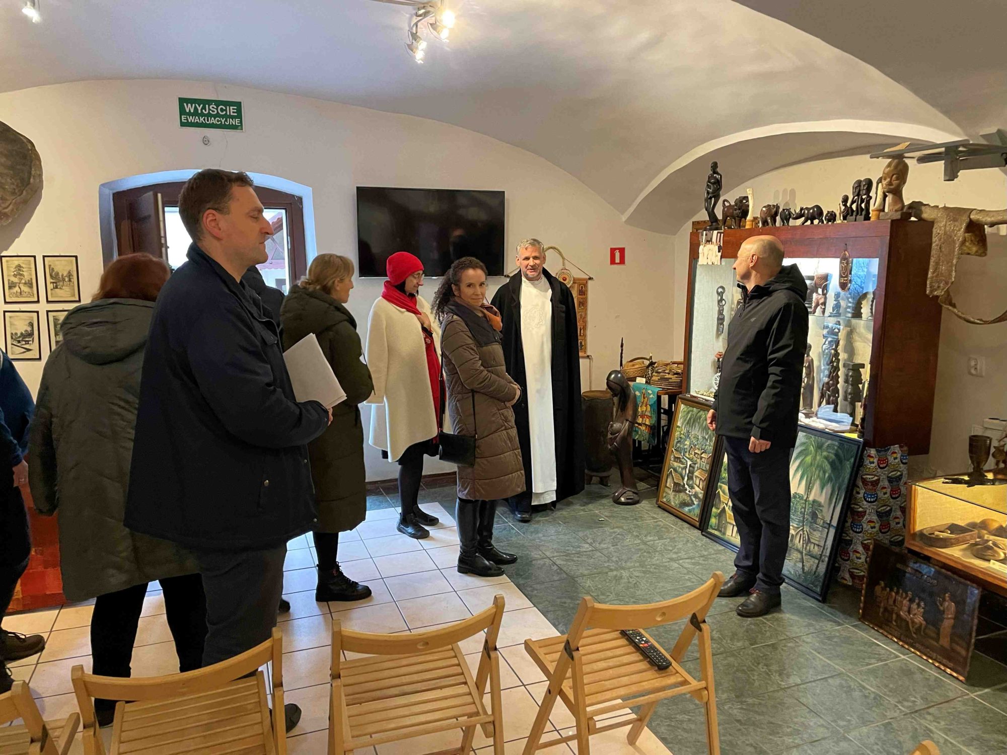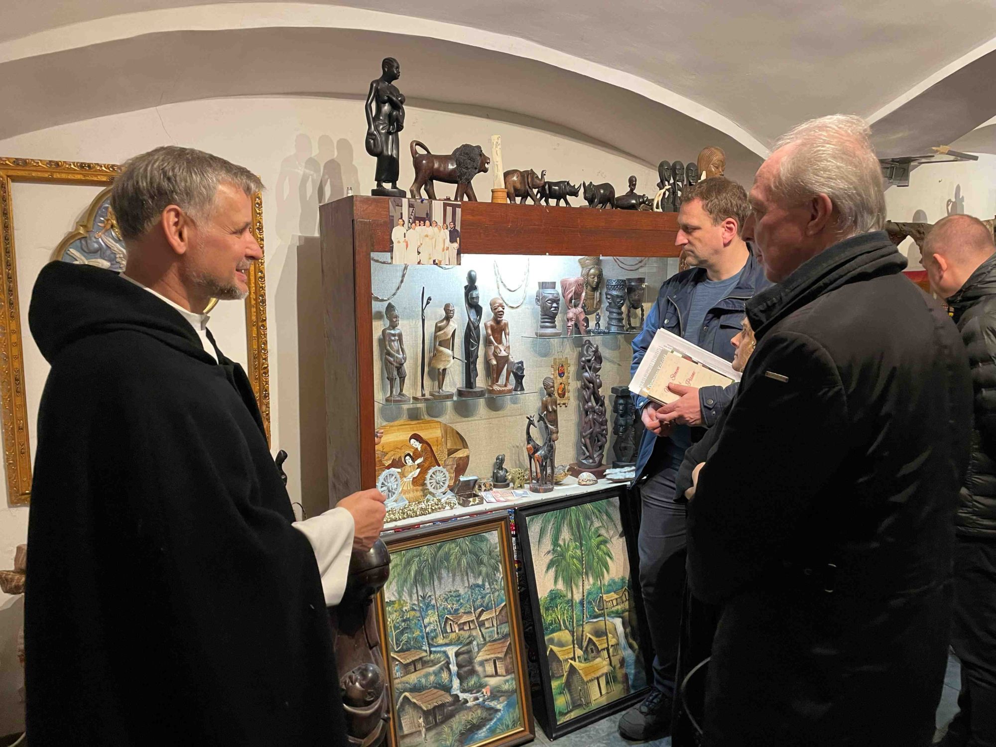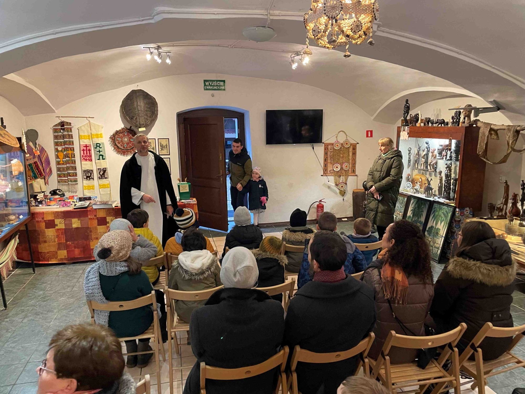 Po mszy świętej w kaplicy parafialnej i obiedzie w klasztornym refektarzu, ojciec Wojciech Kotowski – moderator miejscowego kręgu oraz proboszcz parafii – zabrał nas w podróż w odległe kraje, gdzie misjonarze od lat głoszą Jezusa. Temat naszego spotkania przedstawił nam wplatając własne misyjne doświadczenia, łącząc świadectwo z treściami konferencji. Na koniec zilustrowane zostało wszystko pamiątkami przywiezionymi przez misjonarzy – Sercanów z całego świata. Było to niezwykłe doświadczenie niemal namacalnego dotknięcia Chrystusowego zadania: „Idźcie i głoście na cały świat”, co później, podczas spotkań w grupach zostało przełożone na refleksję nad naszymi możliwościami głoszenia Jezusa w tych miejscach, do których jesteśmy posłani.
