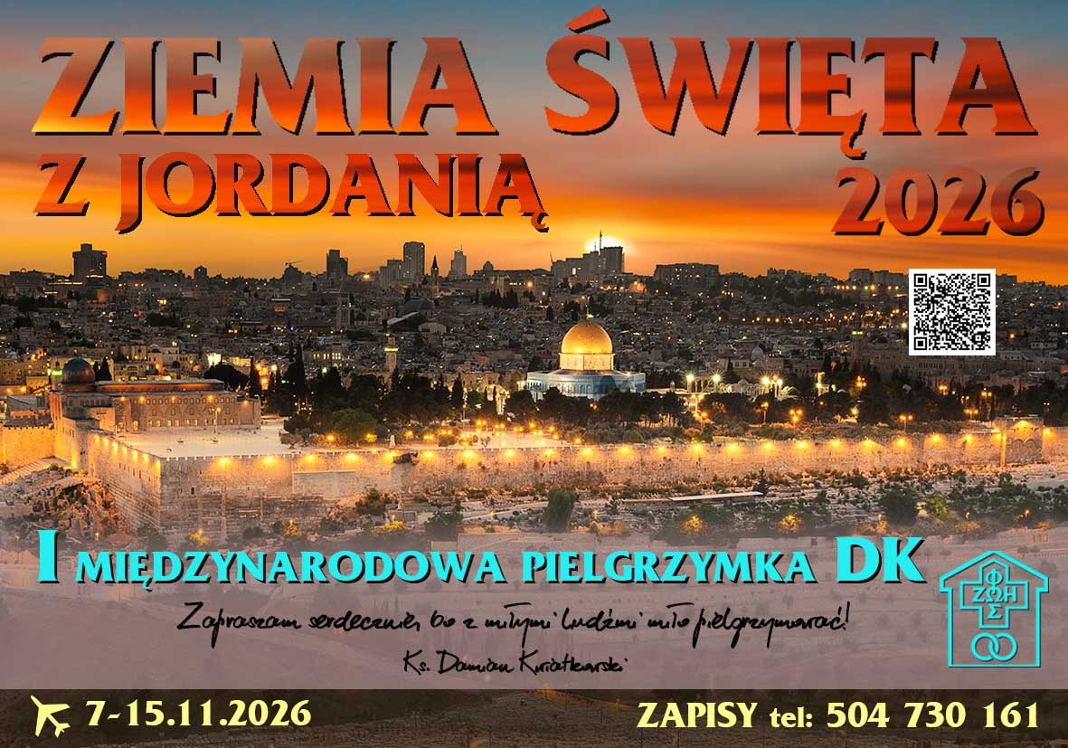 I Międzynarodowa Pielgrzymka DK do Ziemi Świętej 24 stycznia 2026 Więcej szczegółów na stronie: https://www.dk.oaza.pl/aktualnosci/i-miedzynarodowa-pielgrzymka-dk-do-ziemi-swietej/ Poprzedni artykułSpotkanie odpowiedzialnych DK – Łomża 2026