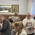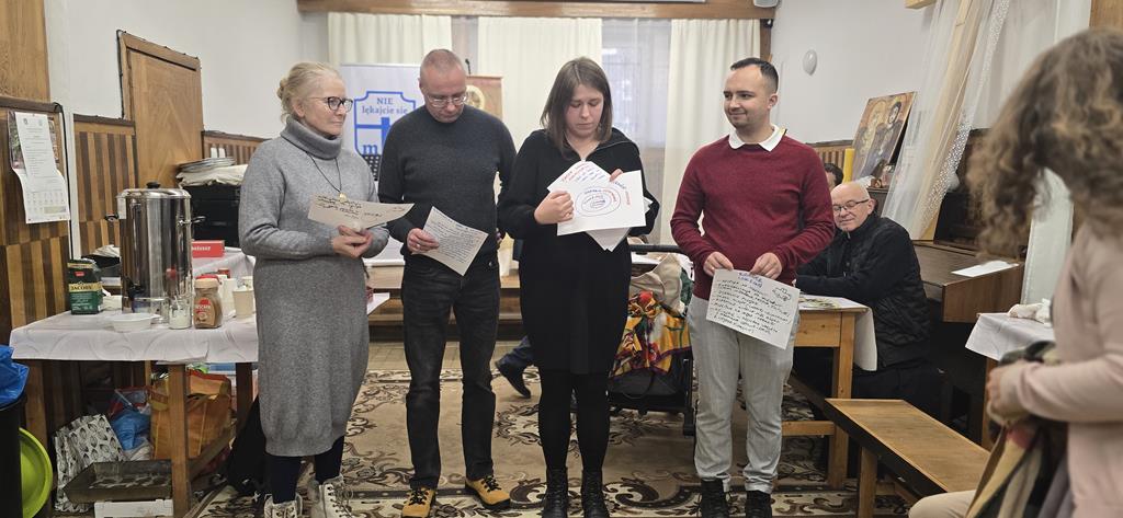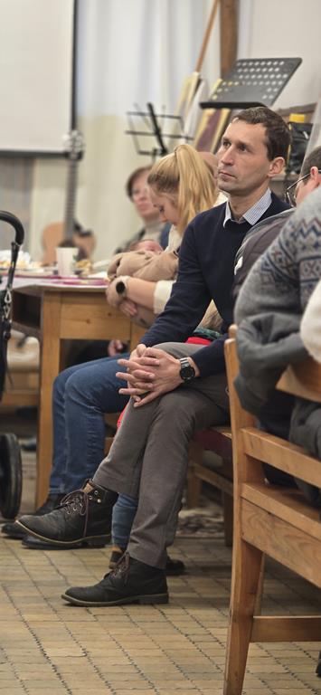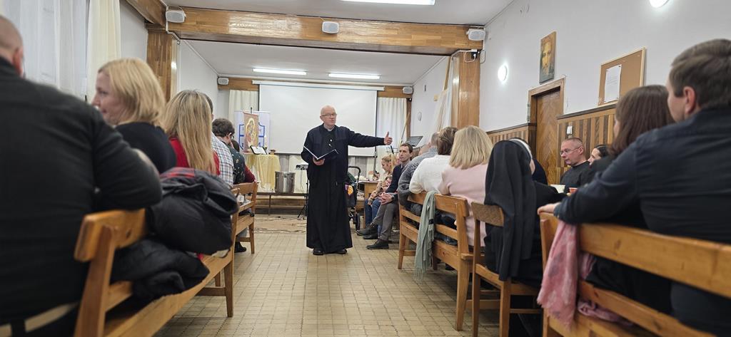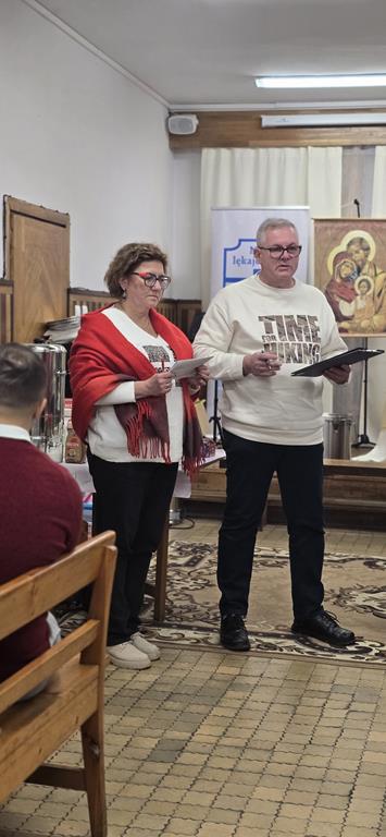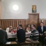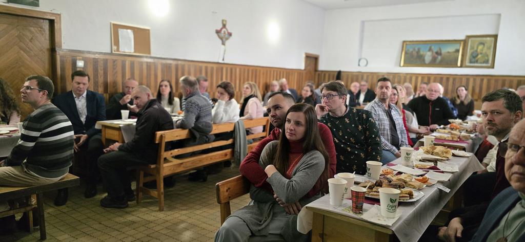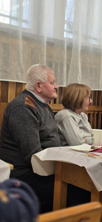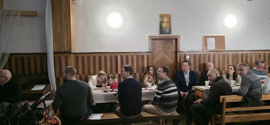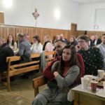 Diakonia Komunikowania Społecznego przygotowała projekcję filmu z krótkim świadectwem (pełna wersja na naszej stronie) Diakonii Misyjnej (Barbara i Czesław Kwolkowie), która wprowadziła nas w temat dnia i spotkania w grupach. Zanim jednak udaliśmy się do małych grup, ksiądz moderator wygłosił krótką konferencję na temat misji i posłania na misje – w różnym sposób możemy uczestniczyć w misjach „na krańcach świata” ale też w naszych rodzinach i najbliższych kręgach. No cóż, słowa o tym, że wśród nas mogą być osoby, które za 10 lub 12 lat będą na tych krańcach świata głosiły ewangelię zrobiły na nas szczególne wrażenie.