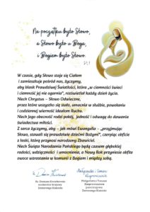 Dołączamy do nich także nasze osobiste słowa wdzięczności za Waszą obecność i świadectwo wiary. Niech ten świąteczny czas w Waszych domach będzie wypełniony pokojem i wzajemną miłością, a światło z Betlejem dodaje sił w codziennym budowaniu małżeńskiej jedności.